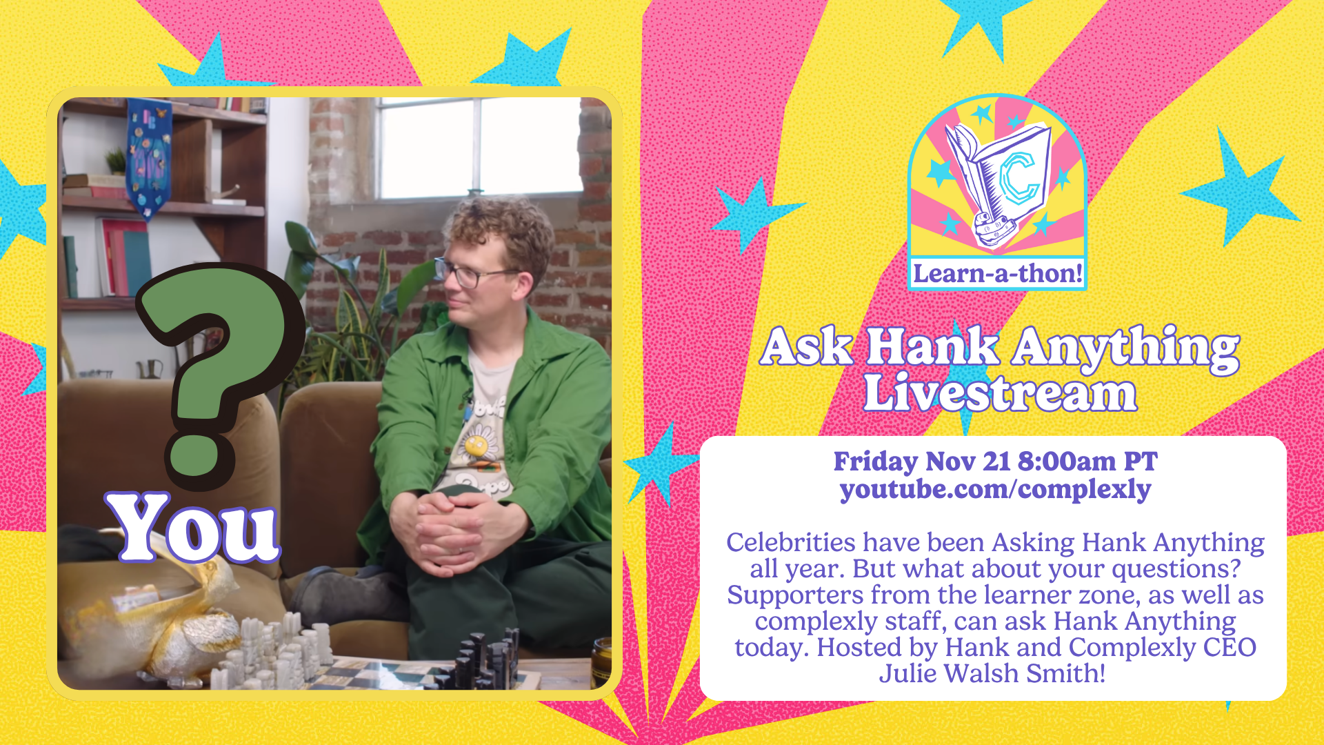 This year, the Complexly staff will celebrate learning with daily quests, livestreams, new limited edition merch, and more!